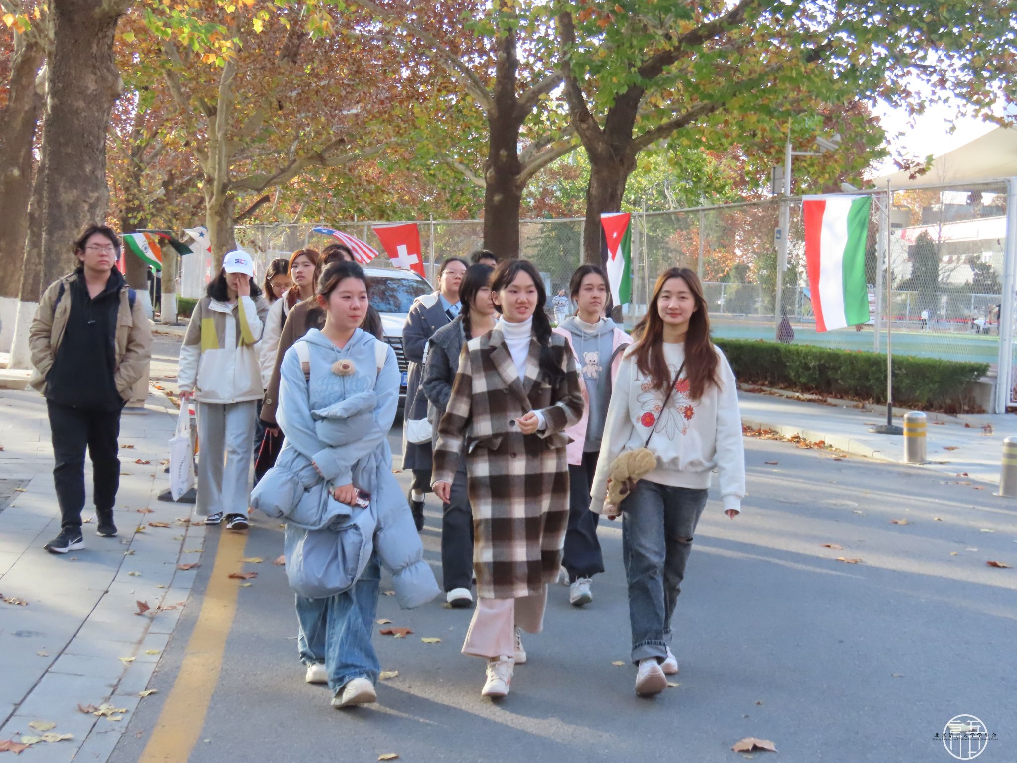 首先,北语校会成员带领社科大校会成员进行了校园参观。从南门的梧桐会堂一路走到教一楼,一路上北语校学生会成员向社科大校学生会成员介绍了北语特色风景和特色活动,充分展示北语的文化特色和独特魅力。