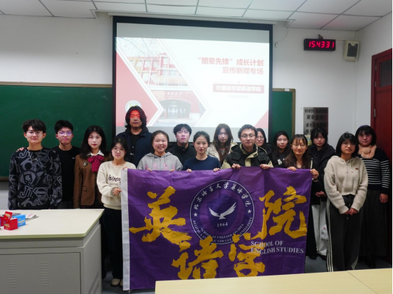 为进一步提升宣传工作的质量和效率,外国语学部英语学院“朋辈先锋”学生干部成长计划——宣传新媒专场活动于11月29日在主南214教室召开。英语学院辅导员王振泽老师、苌怡萍老师,团总支副书记杨玉隆学姐,宣传部部长李旖旎、任奕阳以及新媒体运营部部长张子贤和全体部员共同参与了此次活动。