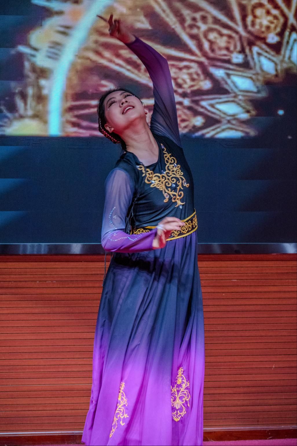 第二篇章以24级人力班王明琦等同学的舞台剧《后妈茶话会》开篇,歌喉灵动展风采,演技精湛塑角色,舞台魅力尽情绽放。24级经济班的罗凤仪和陈逸桐深情演唱《如果可以》,舞台上的她们句句饱含深情,声声动人心弦,似将故事里的遗憾与期冀都揉进了这一方天地。接着,24级国贸班张偌涵同学带来维吾尔族舞蹈《楼兰少女》,似古楼兰精灵穿越风沙,尽显神秘婀娜。第二篇章的末尾,24级金融2班伍华妍同学与23级经济班金楠同学合作带来歌曲串烧《洋葱》和《找自己》,音符跳跃,共谱愉悦旋律华章,台下掌声与欢呼不断响起,观众们沉浸在这欢乐的音乐海洋。