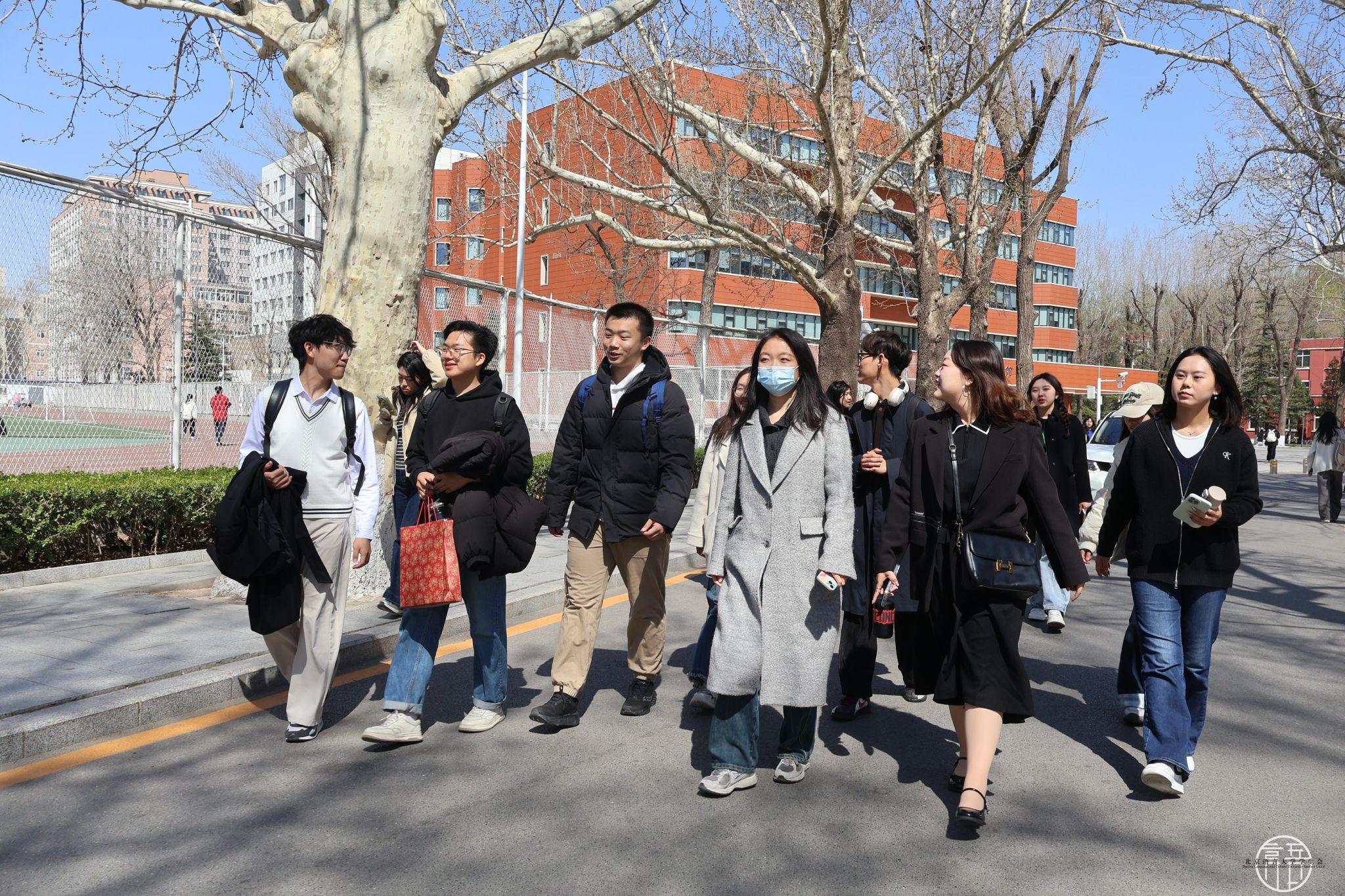 活动伊始,北语学生会成员热情引导中国政法大学学生会的同学们参观校园。从南门步入,沿途经过食堂、操场,漫步梧桐大道,感受自然之美;驻足万国墙,体会“小联合国”独特的人文气息。在参观过程中,北语的校园风光与多元文化氛围给来访同学留下了深刻印象。