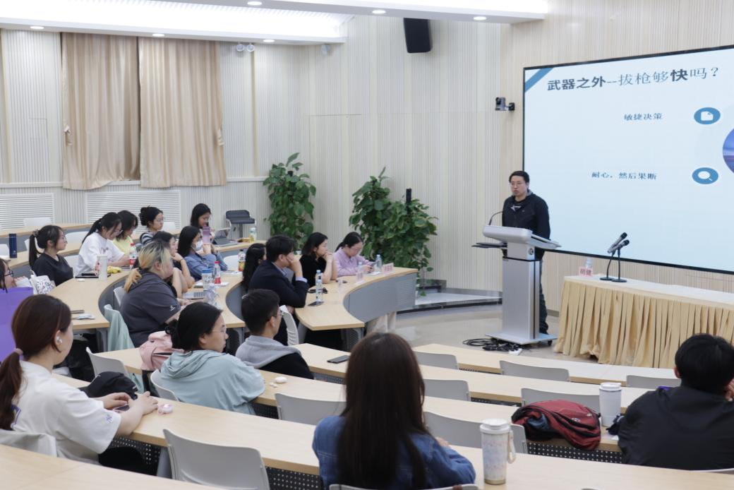 胡健校友以“Know Your Weapon---从金融市场到职场”为主题,结合自身丰富的职场经验,深入浅出地分享了金融行业知识与职场发展路径。他从古希腊哲学家泰勒斯的故事切入,强调了“选择正确武器的重要性”,进而围绕“金融工具”“武器之外”“金融之外”三大板块展开深入阐述。