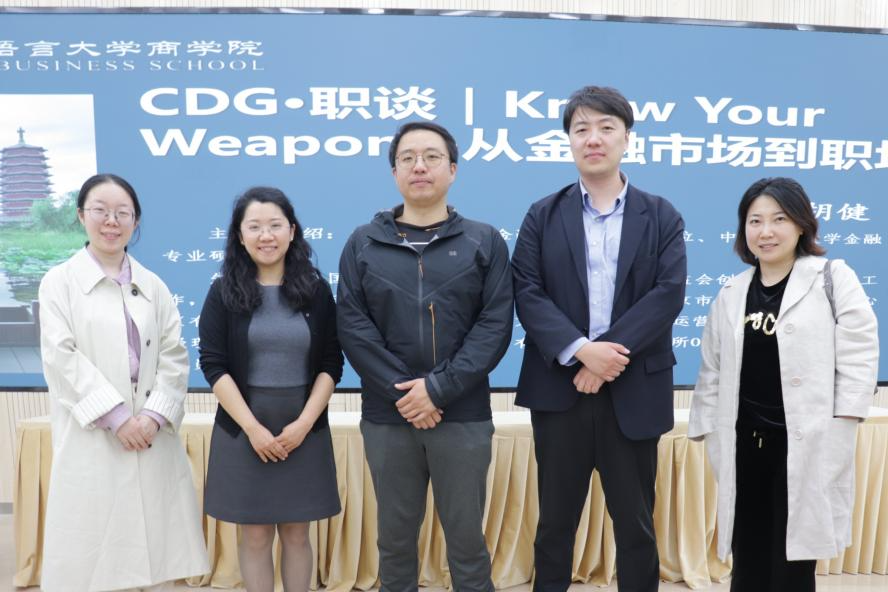 北语新闻网4月29日电(通讯员 段瑞雪 摄影 周嘉诺)为帮助商学院学子了解职场需求、明确职业路径并提升就业竞争力,商学院“CDG·职谈”第五期于4月15日晚举办。本次主讲嘉宾胡健为商学院2011届金融学专业毕业生,现任北京朝阳国有资本运营管理有限公司副总经理,同时兼任北京东方园林环境股份有限公司董事及审计委员会委员。韩亚证券投资部总监罗冬冬、商学院党委副书记王慧媛、学生工作办公室李鹏老师参加讲座。讲座由辅导员辛茹雯老师主持。