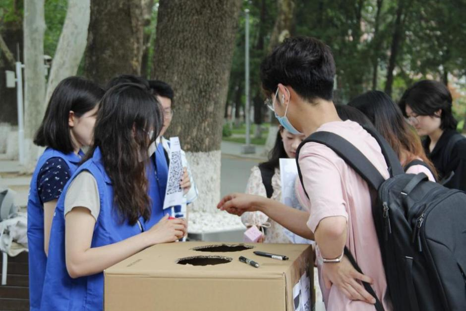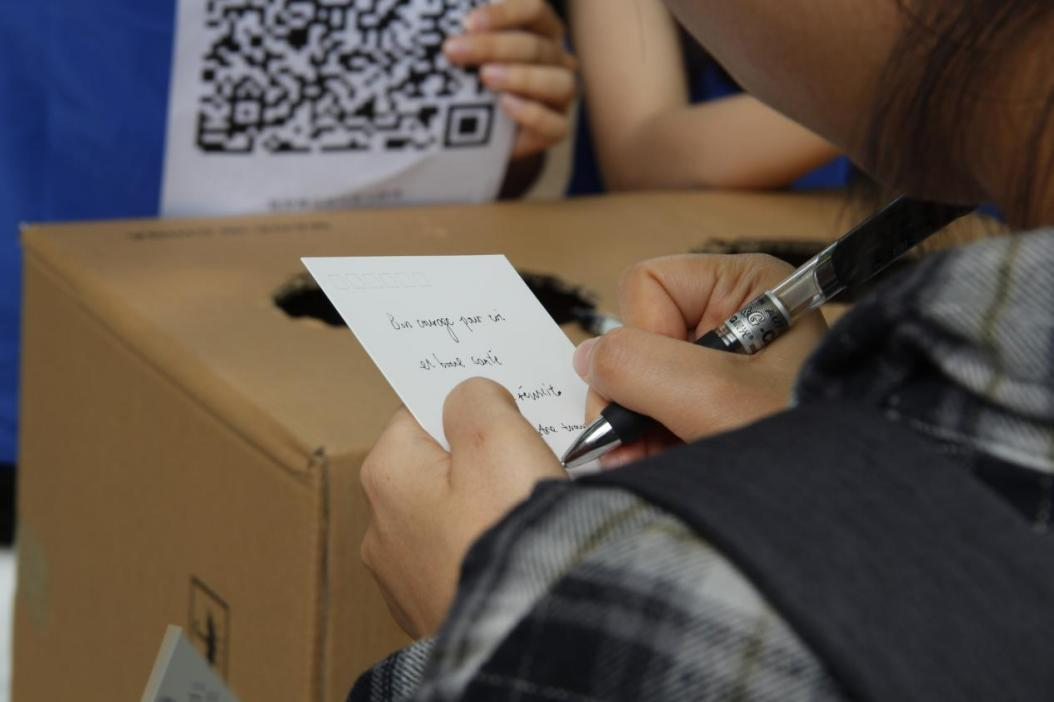随后,同学们随即移步“心情盲盒”展台,将鼓励话语或心情故事书写于明信片,投入共享信箱。一言一语间或藏着暖心祝福,或记录成长感悟,陌生人的善意在此刻悄然联结。