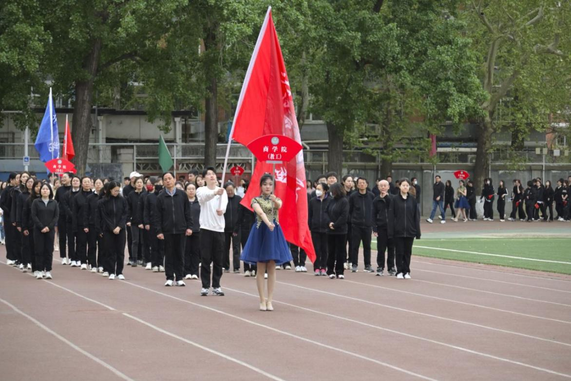 伴着慷慨激昂的进行曲节拍,各方阵有序入场进行汇演。商学院师生方阵以整齐划一的步伐、铿锵有力的口号惊艳亮相,他们步履铿锵、气势如虹,尽显商学院锐意进取的精神风采。在全场运动员列队完毕后,段鹏校长为开幕式致辞。运动员和裁判员代表宣誓环节结束后,倪海东书记为《国家学生体质健康标准》测试优秀单位颁奖,商学院继去年荣膺奖项后,再次凭借出色的体育素养,荣获《国家学生体质健康标准》2024年体质测试500人以上部院系优秀单位一等奖。