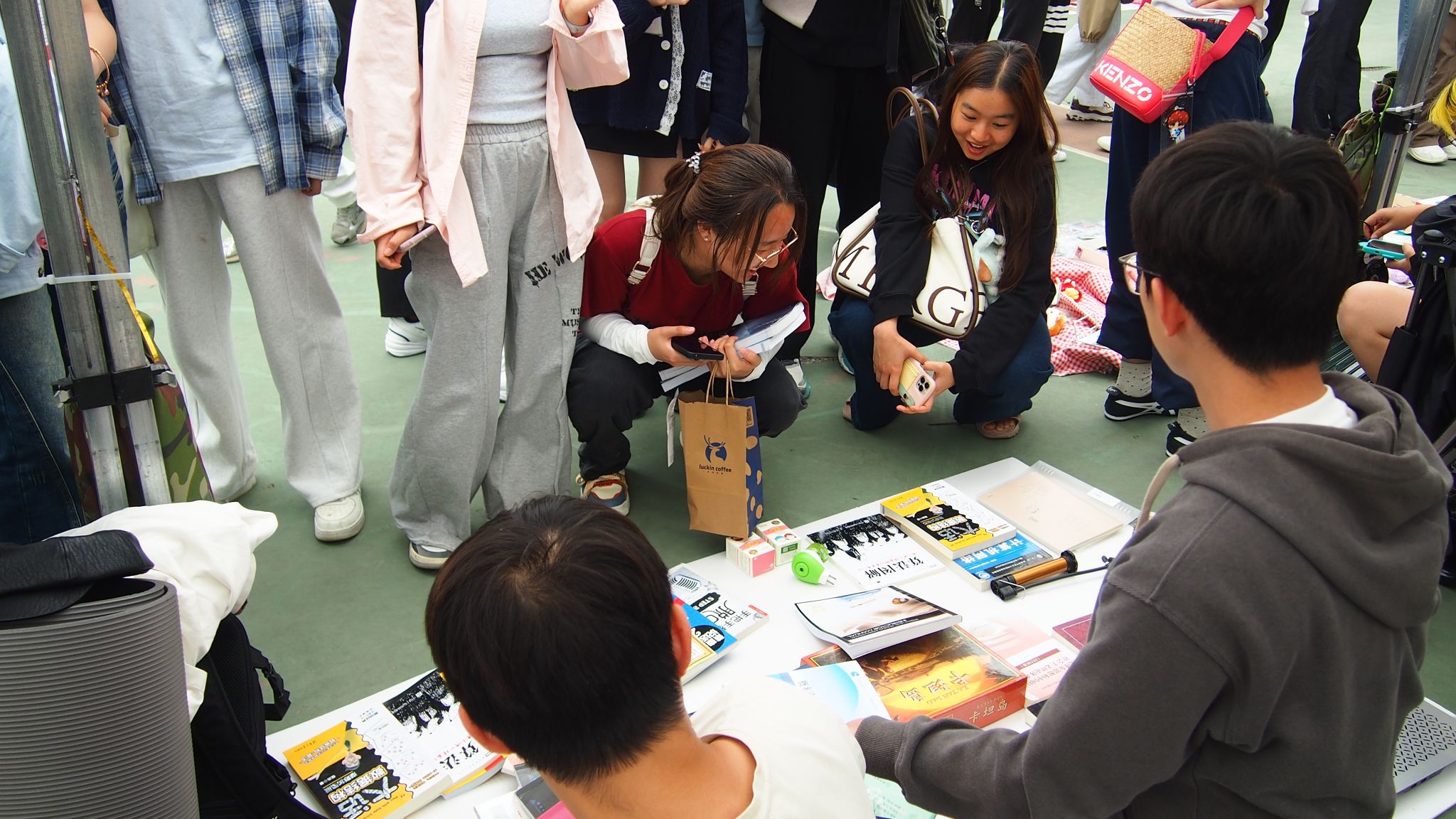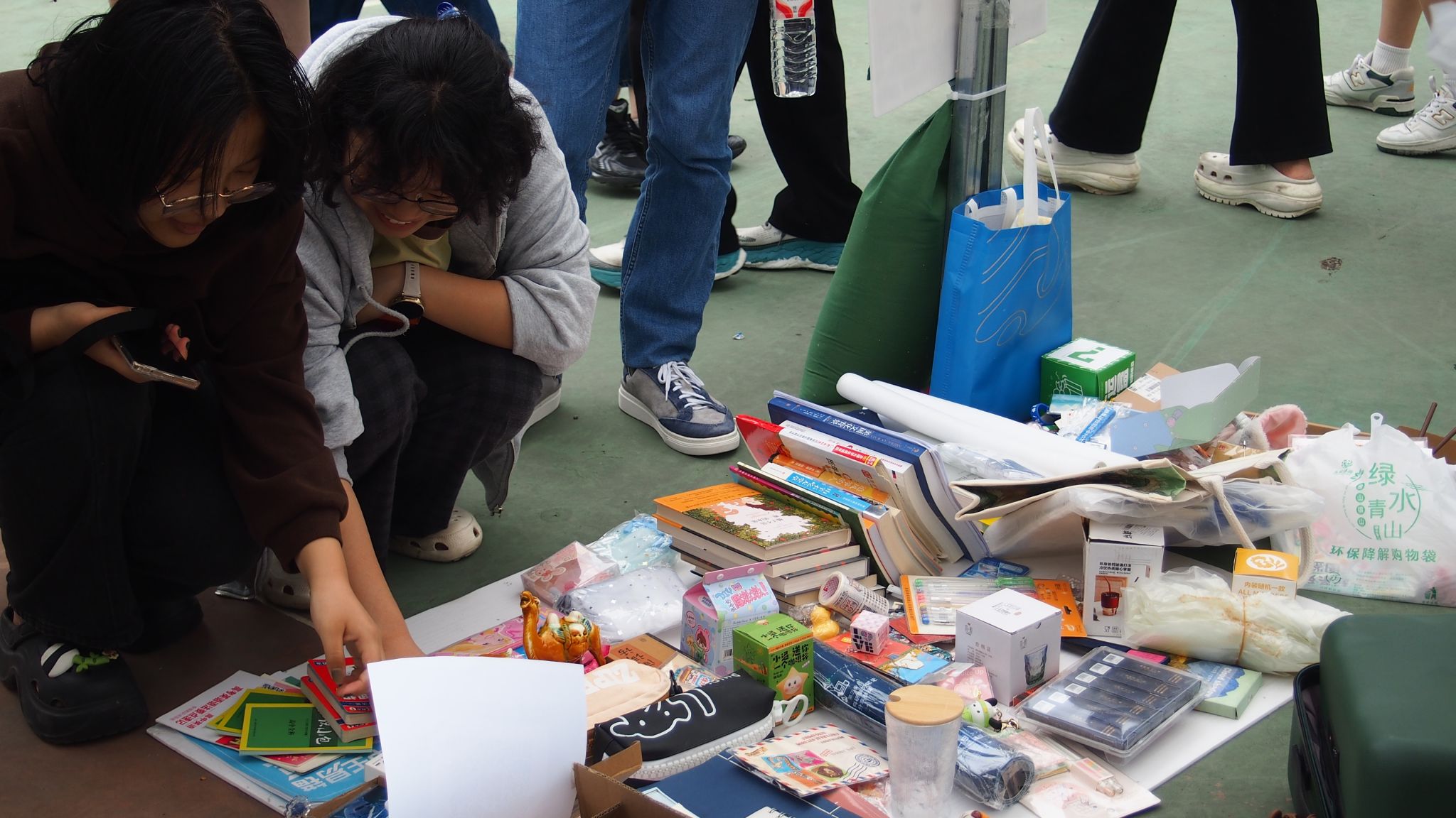 走进市集,一个个摊位排列整齐,各具特色。摊主们热情满满,精心布置着摊位,将宝贝旧物们摆放得错落有致,还贴心地附上价格标签。“店铺”里的商品琳琅满目,从经典文学名著到各类专业教材,从服装饰品到手工艺品应有尽有。一本本带着岁月痕迹的书籍,一件件旧物,在同学们手中流转,又要开启新的冒险啦。