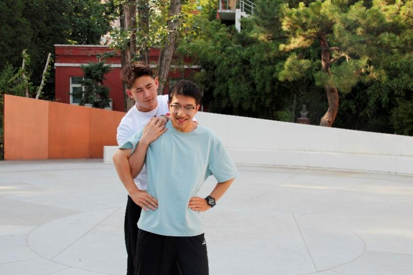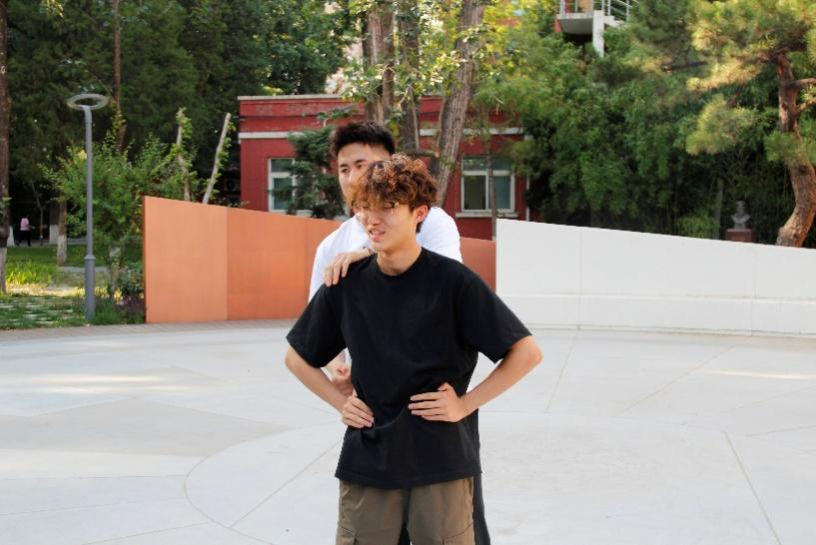 来自健身房的专业教练用活力热身操瞬间破冰,盛夏的风吹动树叶与我们共舞。伴着动感燃脂的BGM,原地高抬腿、开合跳、深蹲、花式拉伸……同学们于和园相聚,共同开跳。