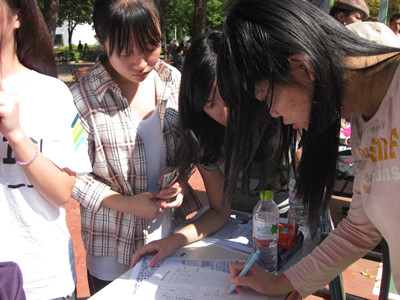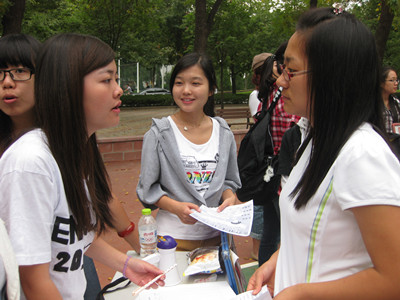 9月27日中午,“百团大战”落下帷幕。众多的社团中,英协在一隅中闪耀着光芒,吸引了众多的同学前来报名。宣传中我们请来了来自泰国和拉丁美洲的留学生助阵,用英语和前来咨询的同学交流,给大家提供练习口语的机会。