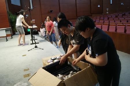 下午六点半,人文学院学生会及分团委的各部长和干事就陆续来到逸夫报告厅,开始了紧张的筹备工作。学习部部长负责统筹规划,各部门的工作人员认真有序地负责本部门的工作。