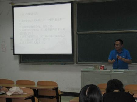 之后,他开始介绍关于决赛的概况。人文知识竞赛决赛计划于5月第四周在逸夫报告厅举行,竞赛形式为现场答题评分。决赛题型包括诗歌创作题、必答题、抢答题、说理题、风险题五类。随后,他对每个题型每个细节都一一进行详细介绍,并根据自己以往参赛经验给同学们提出几条针对性的建议。他说,在决赛前的这段日子里,大家最有可能也最应该下功夫的地方就是诗歌类题型,因为决赛时诗歌创作要求选手要现场限时创作,且要当面向观众及评委展示,所以难度相对来说很大。此外,他还特别建议大家要做好人员分配规划,说理题要将道理阐述清晰等等。