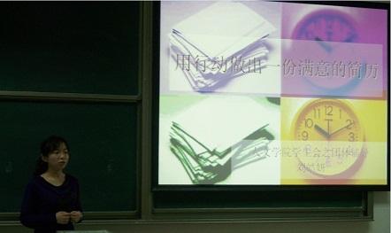 在介绍如何制作简历之前,刘老师向大家简单介绍了一些关于简历的重要意义,刘老师说“简历是大学生求职的基础,它还涉及很多方面,与学生的学习和工作息息相关”。进入正题后,刘老师首先带领大家进行“优秀简历初体验”,为了让大家有一个更直观的体验,刘老师在PPT上展出两张优秀的学生简历,对简历上出现的亮点一一作了点评,并总结了他们填写简历的技巧,如利用关键词来简洁明了地传达出自身优势等;关于“如何自己做出一份优秀的简历”,刘老师则就简历上应出现的个人基本信息、教育背景、校园经历、实习经历、获奖情况、专业能力等各方面逐一进行深入讲解,并与现场同学探讨。之后,她针对学生会干部提出来几点希望与建议。刘老师希望大家能够在工作中锻炼自己的沟通表达、组织协调、团队合作、主动服务及学习实践能力,建议大家能够实时记录下自己的工作经历,用行动不断充实完善自己的简历!最后刘老师简单地阐述了简历上的应注意事项。