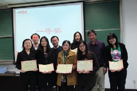 分组汇报结束后,全体师生参加了论坛闭幕式,研究生部刘现强副主任也出席了闭幕式。闭幕式由中心研究生孟莹同学主持。首先由邢红兵教授对本次论坛进行了全面总结,宏观上分析了论文的优点与不足,并从论文选题、文章结构及写作格式等方面提出了几点建议。接着,举行了颁奖仪式。论坛共评出一等奖3项、二等奖6项,由校研究生部刘现强副主任、汉考中心张旺熹教授及中心部分导师等为获奖同学颁发获奖证书和奖金。颁奖结束后,刘现强副主任对本次论坛的成功举办表示了祝贺,并充分肯定了汉考中心在研究生培养方面的出色工作,同时还对汉考中心研究生会的工作提出了进一步期望。
