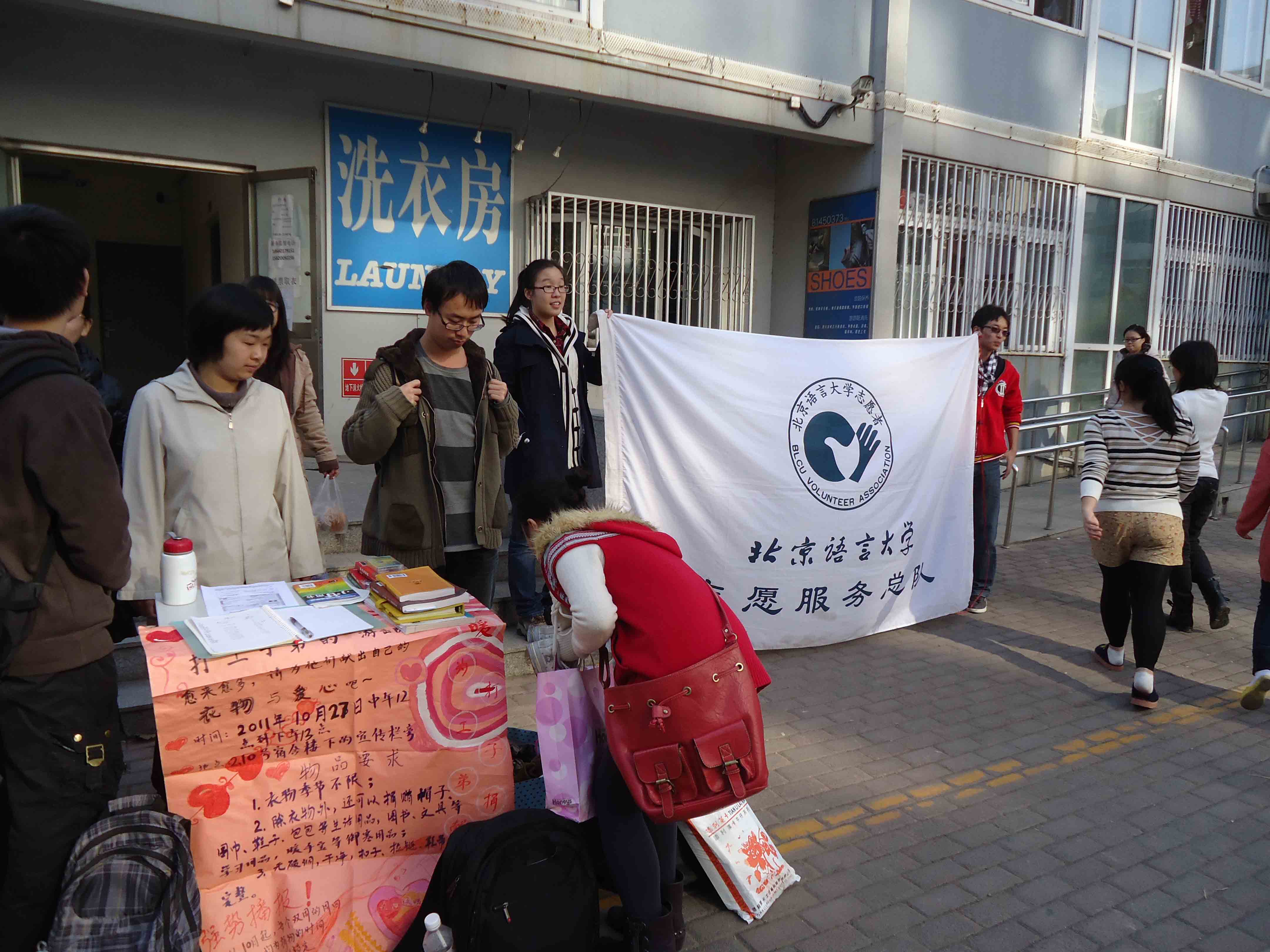 11月10日中午,宿舍10号楼下,在关爱部部长戴鑫茹和孙昊的带领下,由关爱部承办,研究生学生会协助的为打工子弟小学献爱心捐衣捐书活动火热开展,大家拿着旧衣旧书前往展台,带着爱情与热情温暖了冬日的寒冷……