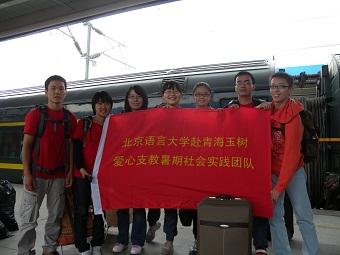 由信息科学学院7名09级同学组成的北京语言大学赴青海玉树爱心支教暑期社会实践团队于8月23日从北京西站出发,携带200多斤的图书,经过19小时的火车跋涉,行程2092公里,于8月24日安全抵达青海省西宁市。由于出发前两个星期团队成员每天坚持跑步,同时服用藏药红景天,所以经过两天的调整基本适应高原环境。