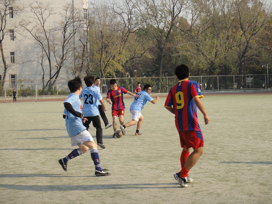 中场休息时,蓝队集合在球门前,在做着自我调节的同时,也一起商量着下半场的对策。最终决定要继续加强防守,不再让对方踢进一球。国商不放松任何一个射门的机会,猛烈的攻势与拼命的防守使整场比赛陷入一种僵持状态。场外的各种加油声,却使一声比一声响亮。“好球!”“稳住,人文加油!”“继续啊,往前踢!”最终,国商以1:0获得比赛胜利,成为本次杯赛的第三名,人文紧随其后排第四。