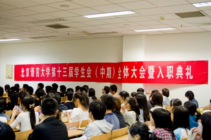 第十三届北京语言大学学生会共有毛绿萱等23人成为校学生会委员会委员,并有142人成为校学生会部门助理。校会的工作已经陆续展开,全体校会成员将为营造良好的校园氛围、创造更精彩的校园生活而不懈努力。
