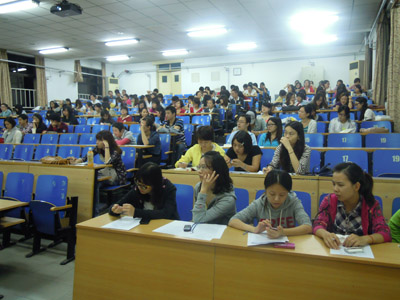 此次活动,旨在帮助学院2012届毕业生明确大四一年的时间规划,帮助毕业生高质量地就业。活动中,李超老师提醒大家,为追求理想的目标,首先需要有良好的自我认知。他劝勉大家要端正态度、客观认识自己、主动寻找机遇、理智做出选择、注意积累和技巧。对于同学们即将面临的关于毕业动向的抉择,他从考研,出国,就业三个方面,依次给出他多年总结的时间表模板,明确了每个月、每个时间段必须要做的事情。李超老师还对2010届和2011届毕业生的数据进行了详细、深入的分析,几张柱形图和饼图清晰地显示出出国、考研和工作的特点和就业的趋势,李超老师还在男女生就业数据上做了特征分析。最后,李超老师介绍了今年保送研究生、“1+1+2”项目及荷兰莱顿大学、英国里丁大学等研究生联合培养项目。