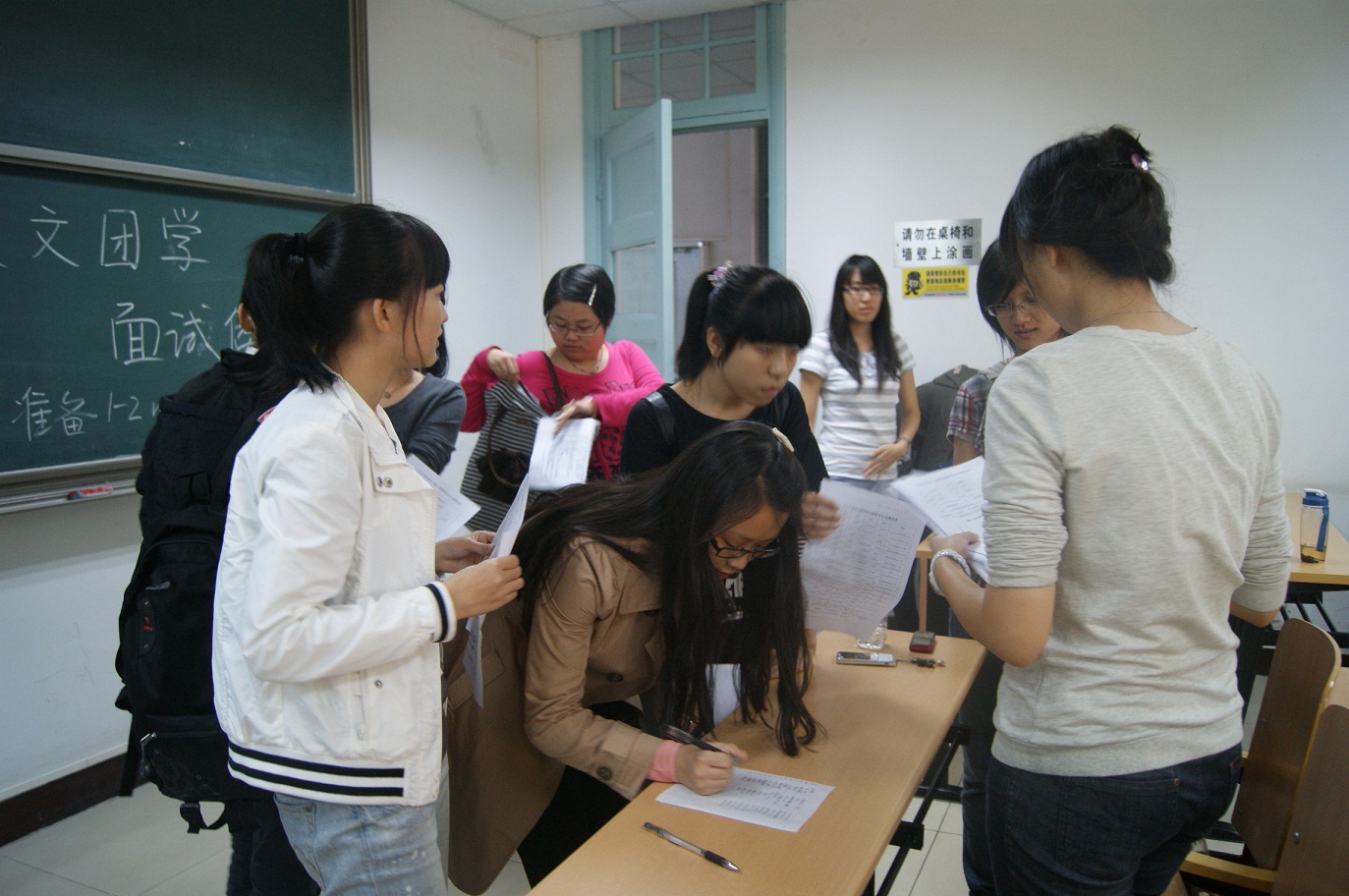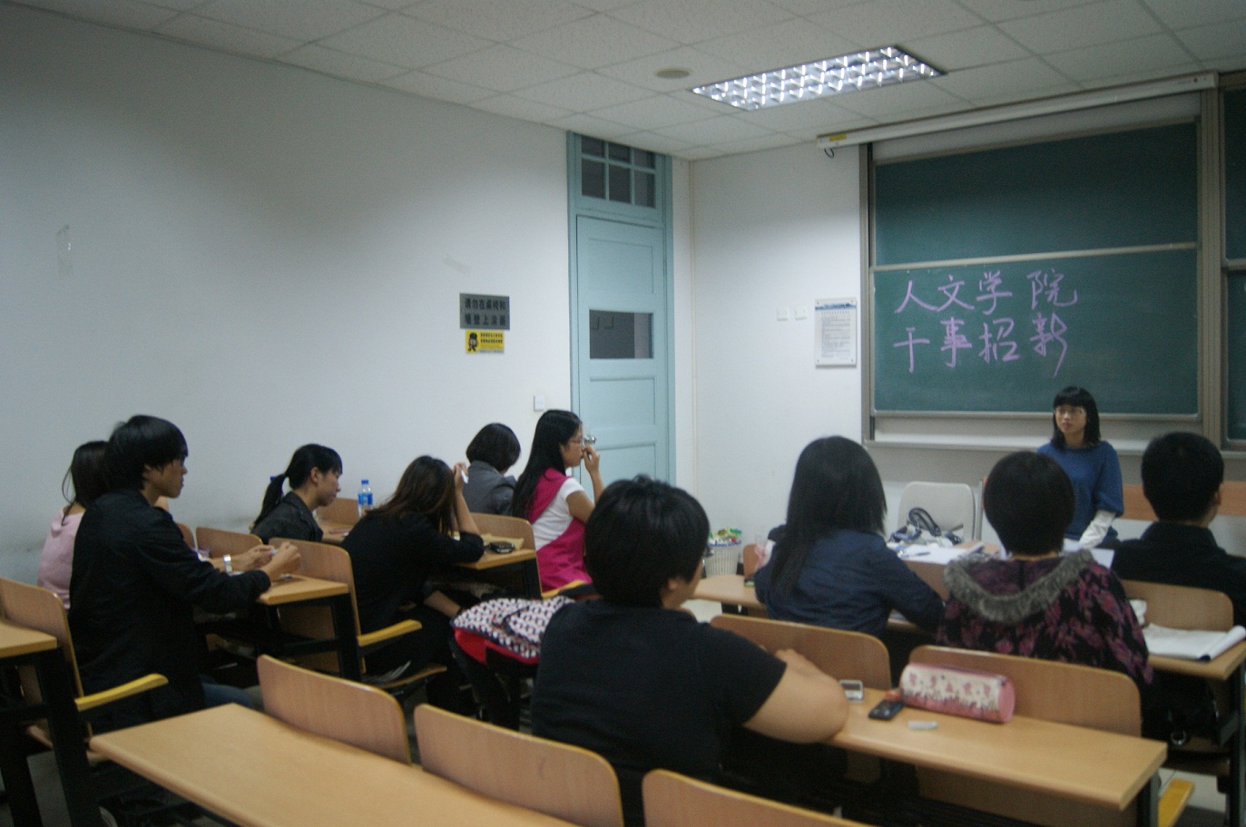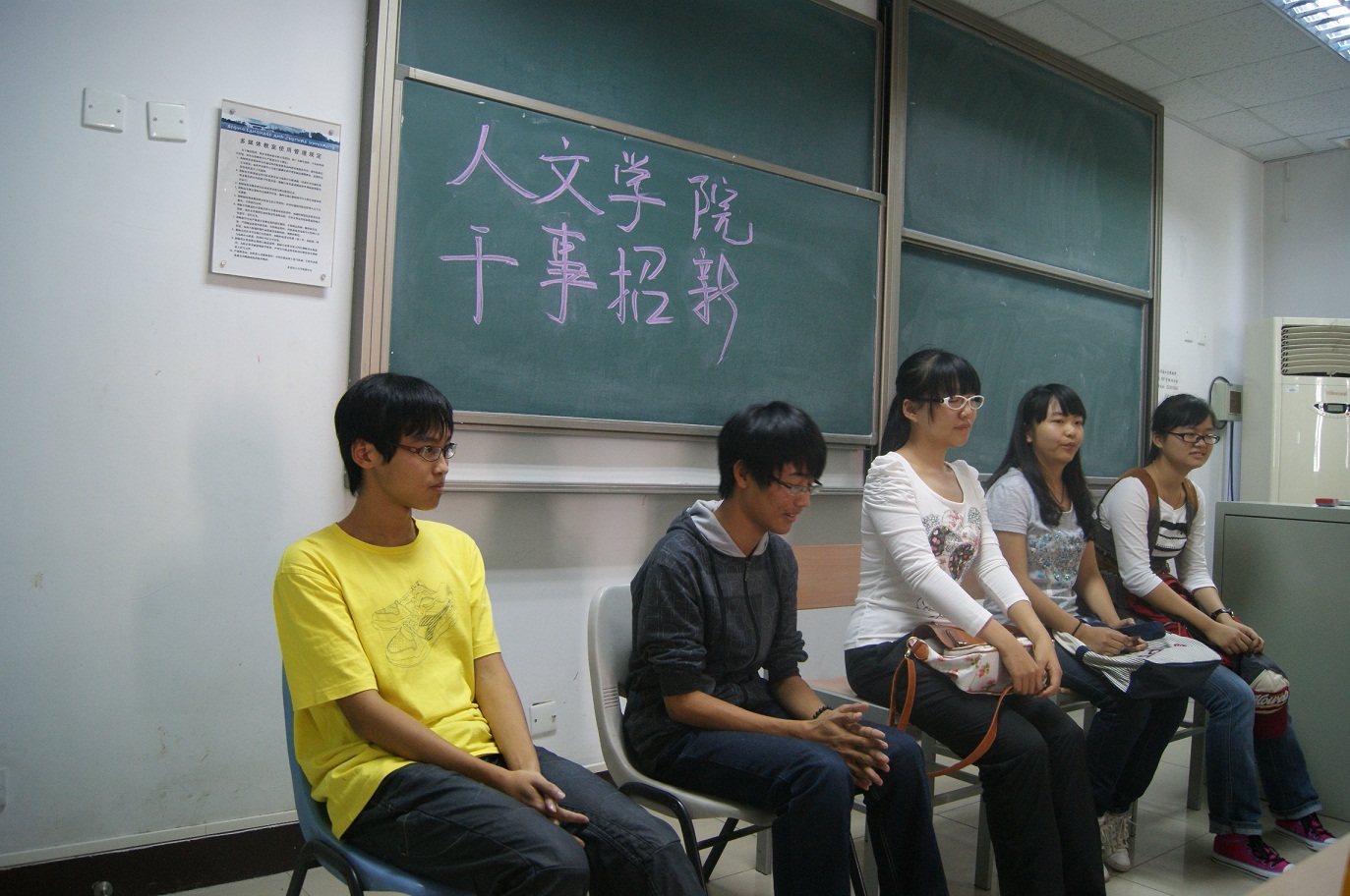 9月23日下午,人文学院分团委和学生会在教四楼的202室进行了2011—2012学年的招新活动,来自全院各个专业的大部分同学均有来参加此次面试的选拔。