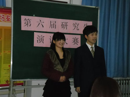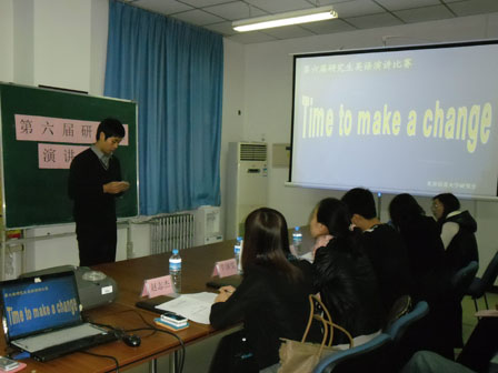 11月9日晚7时30分,北京语言大学研究生会学术部举办的第六届研究生英语演讲比赛预赛在主南401精彩开幕。研究生会主席蔡建永,第七届研究生会副主席兼外联部部长牛沫雯、办公室副主任赵志杰、学术部副部长鲁海洁,2010年北京市英语演讲比赛二等奖获得者彭杰担任此次比赛评委。来自各学院的十八名选手们尽显风采。