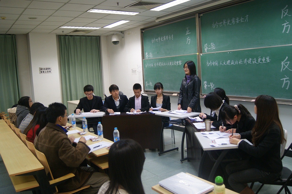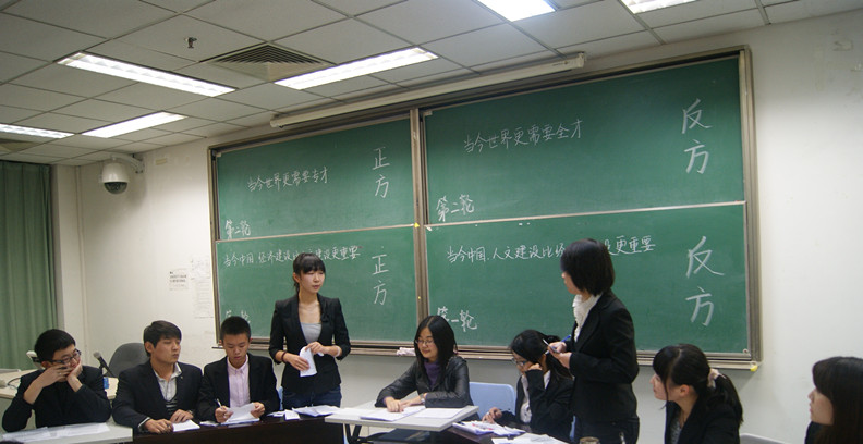 10月31日晚,人文学院中文辩论赛决赛在主楼401落下帷幕。第二轮正方队伍,由11级新闻系周睿智任队长,凭借在“当今中国更需要专才”这一辩题中的精彩表现,成功夺得第一名。