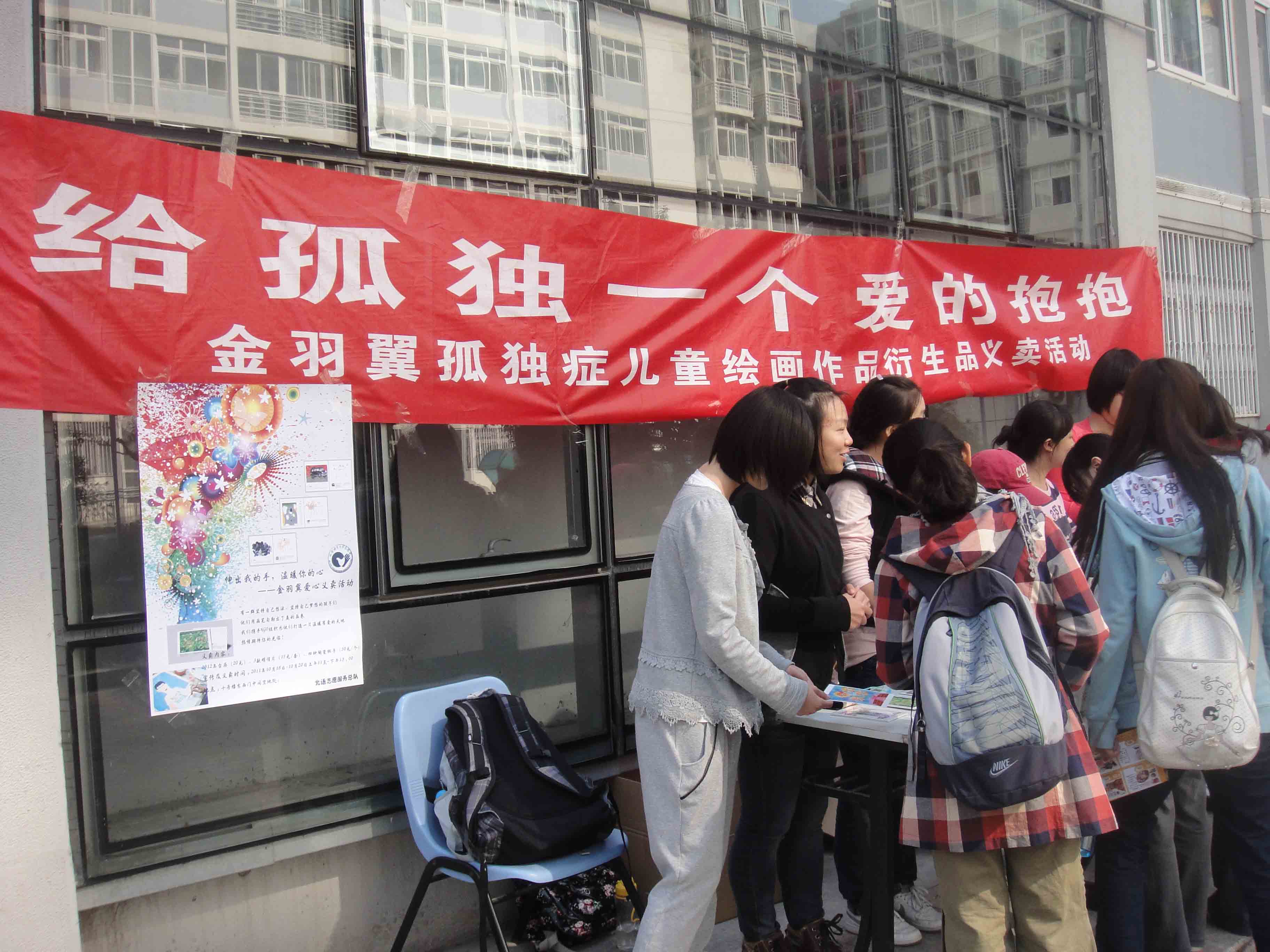 “伸出我的手,温暖你的心”。我校志愿服务总队关爱部携手NGO组织开展了旨在帮助孤独症儿童,为他们打造出一片温暖有爱的天地的义卖活动。孤独症儿童大多存在语言沟通障碍,但他们用画笔勾勒出了自己的内心世界。义卖活动的展品包括台历、明信片和陶瓷杯,展品上印有孤独症儿童亲手画出的图画。义卖活动获得了同学的广泛关注和支持。同学们纷纷表示,愿意尽自己的绵薄之力去帮助患有孤独症的儿童们,鼓励他们勇敢地走出自闭的世界。