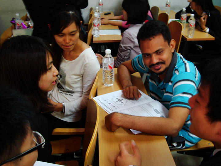 志愿者们为大家准备了精致的视频来介绍埃森哲。全程使用英文的设计让学员们向对这个国际型企业的了解迈进了一大步;而后小小的有奖竞答问题更加带动了大家的积极性,活跃了现场气氛。破冰游戏结束后,志愿者们开始分享经历与经验。从中每个人都深深地体会到了,他们决不是一跃就成为这个优秀企业中的一员,更不是没有方向的成就了今天的自己。他们有的辗转三四次才找到最适合自己的坐标;有的甚至放弃了自己一手创办的公司来寻找更广阔的天空。他们告诉台下的同学们要知道自己想要什么,找回最初的梦想,更重要的则是不断提升自己的能力来胜任我们的理想职业。也许一个人的梦想将会改变,但无论如何,都要努力实现自己的人生价值,决不能随遇而安。在不断调整中一步步认清自己,找准方向,懂得放弃,最终找到属于自己的职业。