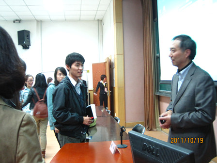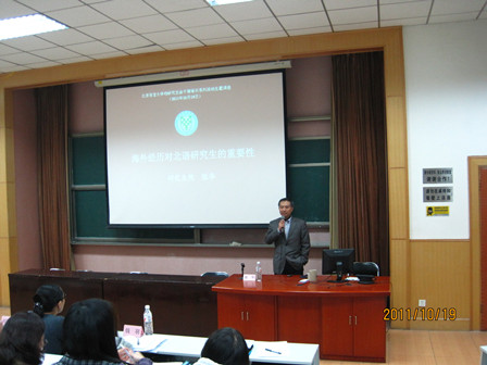 研究生院副主任张华教授以“海外经历对北语研究生的重要性”为题,结合图片为在场师生做了精彩讲座。首先,张华教授提到“文化交流”、“人文交流”在国际交流中的地位日益提高,敦促大家践行北语的口号及校训。其次,张华教授还将其导师对其提出的三点要求即必须拥有博士学位、英语必须彻底过关、必须拥有海外经历转送给同学们,期望与大家共勉。接着,通过精美的照片,张华教授比较介绍了哈佛大学、剑桥大学、哥本哈根大学、波士顿大学等欧美著名大学以及泰国、越南、日本、马来西亚等亚非拉各国的学校,分享了其海外访问和游学的经验,并希望研究生会同学在举办活动的时候可以借鉴海外大学的成功经验。他还指出“整个世界日新月异,不断变化着,所以需要我们不断地拥有海外经历”、“在当代,见识可能比知识更重要”, 并鼓励大家出国游学、开阔眼界。之后的互动提问环节,张华教授针对16所院校的海外培养项目、海外志愿者项目、海外学校的奖学金、双学位、住宿生活等同学们十分关心的问题耐心详细地做出了回答。活动最后,钱羽老师整理了一些常见问题的答案,细致地为大家答疑解惑。