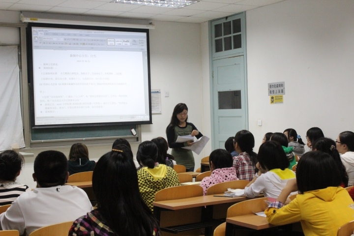 课程第一项是办公室主任朱圻简要讲解策划文案的写作、活动参与人员的信息统计等办公室常规工作及其相应的办公软件操作。接下来是管理部部长冯西奥用幽默诙谐的语气为助理们传授了一些管理部日常工作涉及到计算机操作技巧,同时鼓励助理自己多去探索,寻找到便于自己记忆的操作方法,最后新闻中心主任白雪较系统地讲解了新闻写作及摄影,她借鉴了以往北语新闻网的新闻素材,结合总队新闻发布的特性向助理们提出了希望。