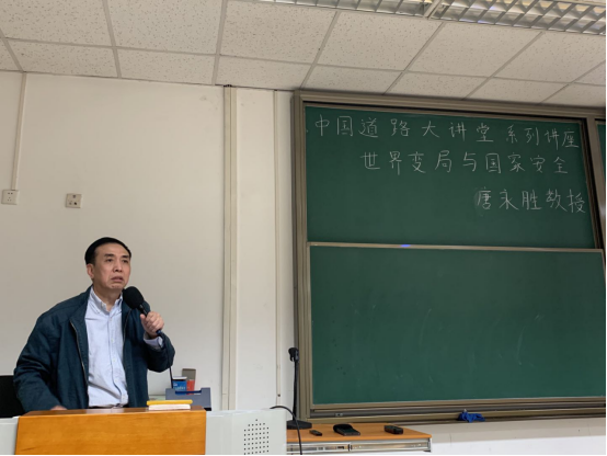 在讲座中,唐教授提到当前国际安全面临许多挑战和风险,世界正处于百年未有之大变局。唐教授结合自己的认识以及亲身体验,从三个方面解读了当前世界格局产生变动的原因。一是国际体系进入加速演变期;二是大国关系进入新一轮战略博弈期;三是中国社会变革进入攻坚期。