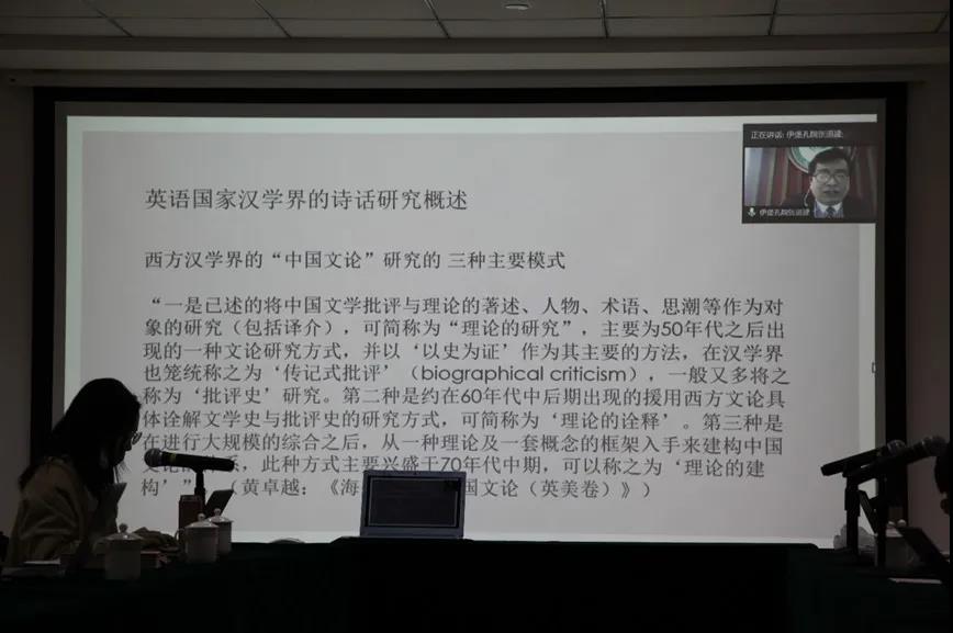 本期沙龙的主题是《英美汉学界的诗话研究》,由丁珂文老师主持、中华文化研究院讲师张道建主讲。张老师由于工作关系,目前远在巴基斯坦,因此本次活动采用线上线下双结合的形式进行。