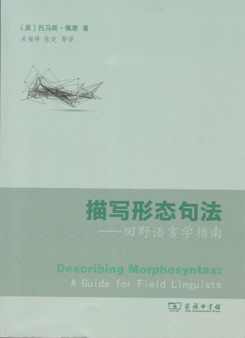 北京语言大学语言科学院吴福祥教授带领其弟子中国社会科学院语言研究所张定副研究员等人翻译的《描写形态句法——田野语言学指南》(Describing Morphosyntax: A Guide for Field Linguists)不久前由商务印书馆正式出版发行。