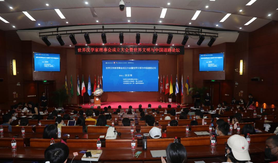 7月20日,“世界汉学家理事会成立大会暨世界文明与中国道路”论坛在京举行,来自60余国的百余位汉学家及国内学者与会。会议由世界汉学家理事会召集人、北京语言大学一带一路研究院院长徐宝锋主持。会上宣布成立了“世界汉学家理事会”,并开启了“世界文明与中国道路全球论坛”。埃及前总理沙拉夫(Essam Sharaf),白俄罗斯前文化部长鲍里斯·斯威特洛夫(Boris Svetlov),乌兹别克斯坦驻华大使法尔霍德·阿尔季耶夫(Farhod Arziev),古巴驻华大使卡洛斯·米格尔·佩雷拉(Carlos Miguel Pereira),第十七届中央委员、十二届全国人大常委、教育科学文化卫生委员会主任委员、原国家新闻出版总署署长柳斌杰,世界汉学家理事会理事长、北京语言大学校长刘利,美国汉学家艾恺(Guy Alitto)等分别致辞,北京语言大学一带一路研究院特聘教授张西平,北京语言大学教授、汉学研究所所长黄卓越,德国汉学家谢林德(Dennis Schilling),俄罗斯汉学家索罗宁(Solonin Kirill)在论坛环节发表了主旨演讲。