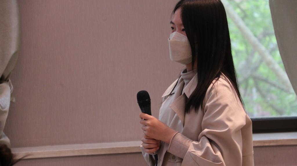 分享交流环节中,同学们结合自身经历,分享了自己对戏曲戏剧与文化外交的思考。郭佳颖同学分享了自己对京剧《王子复仇记》的观看感受,认为这部跨文化戏剧精妙地融合了中西方艺术的形与魂。俄罗斯留学生波琳娜·扬琴科同学在发言中分享了自己对京剧《王子复仇记》的观看感受,并就京剧《王子复仇记》的改编进行提问。张小轩同学提出,作为一名北语学生,应当在推动京剧等中国优秀传统文化的对外传播中贡献自身的力量。甄建国先生表示,在跨文化交流的过程中,可以通过寻找中外文化的共同点、相似性来帮助互相理解。同时,也支持北语借助“小联合国”的跨文化交流平台,通过举办京剧实践活动,推动京剧的国际化传播。