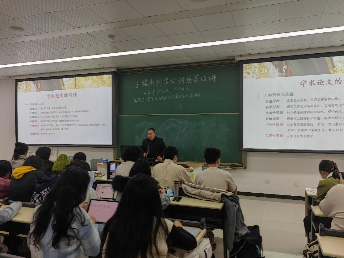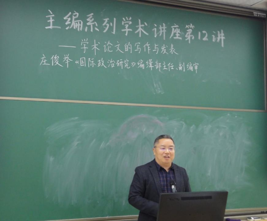 12月14日下午,“主编系列学术讲座”第12讲在教二楼131隆重开讲。北京大学《国际政治研究》编辑部主任庄俊举副编审应邀作为主讲嘉宾,作了题为“学术论文的写作与发表”的讲座。讲座由国际关系学院院长贾烈英教授主持。