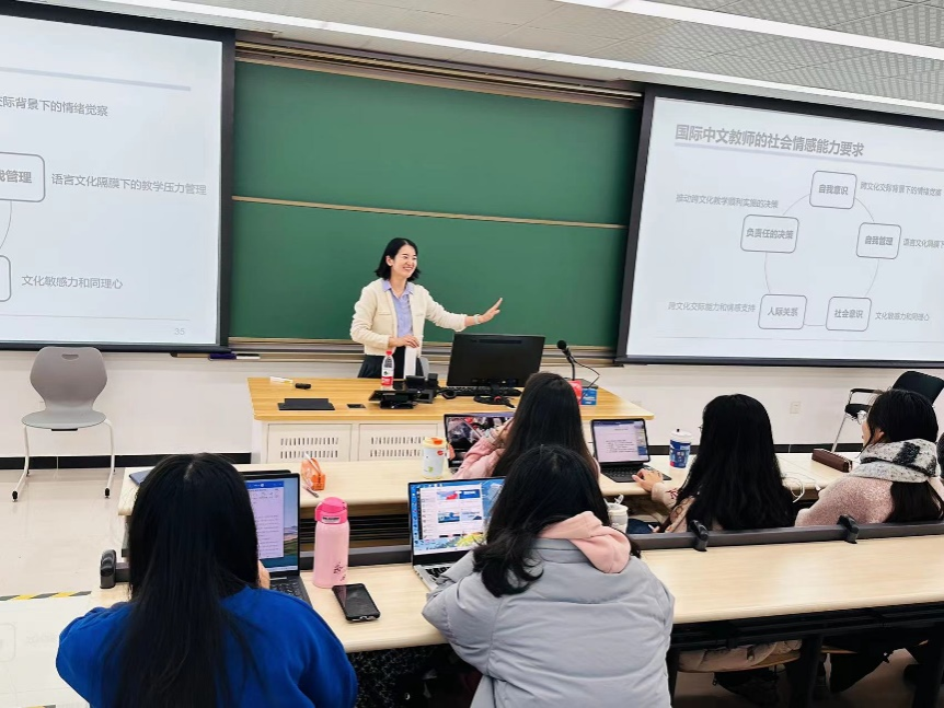 12月13日下午,北京语言大学“汉语第二语言教学系列专题”第十一讲在教二楼430教室如期举行。北京语言大学教师教育学院刘敏老师为同学们带来了题为“国际中文教师教学中的情感叙事探究”的专题讲座。刘老师的讲解内容详实生动,发人深省,中外同学积极参与互动,现场气氛热烈。