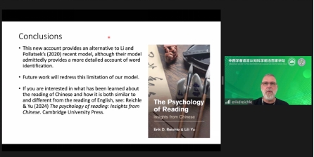 澳大利亚麦考瑞大学Erik Reichle教授以“英汉阅读过程中的眼动建模”为题,详细介绍了英汉阅读过程中的眼动模型,强调了不同语言阅读的眼动模式对教学和跨文化交流的重要性。