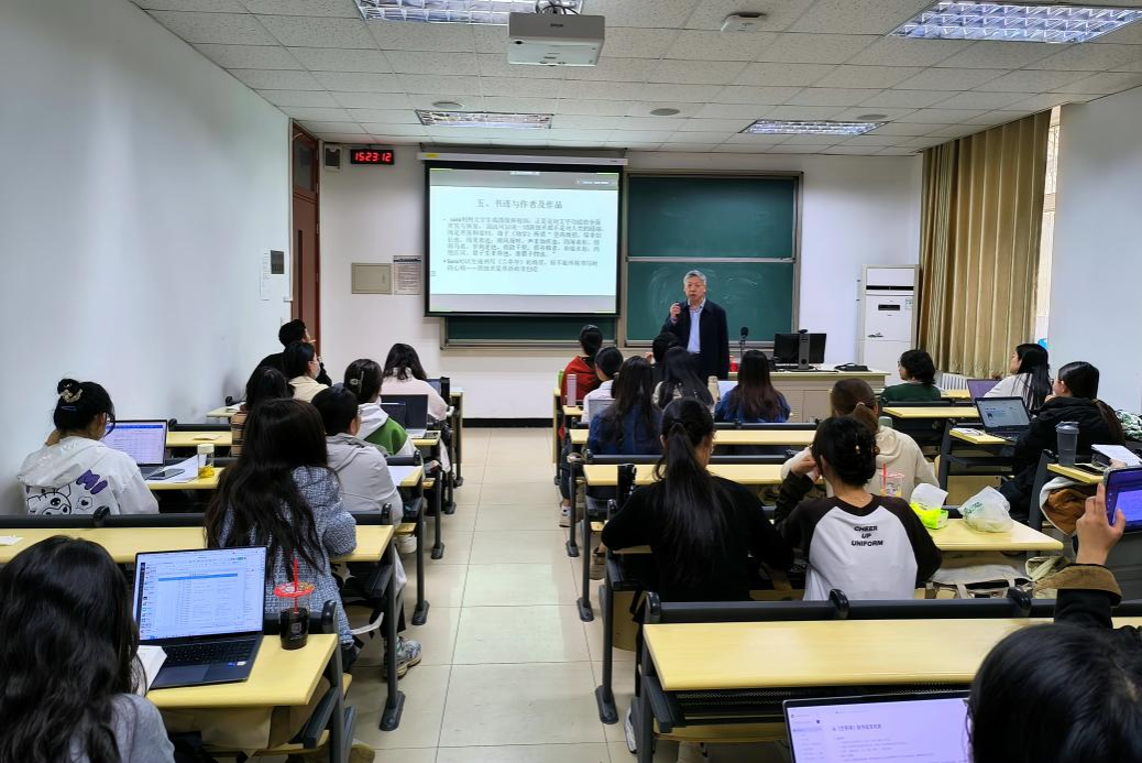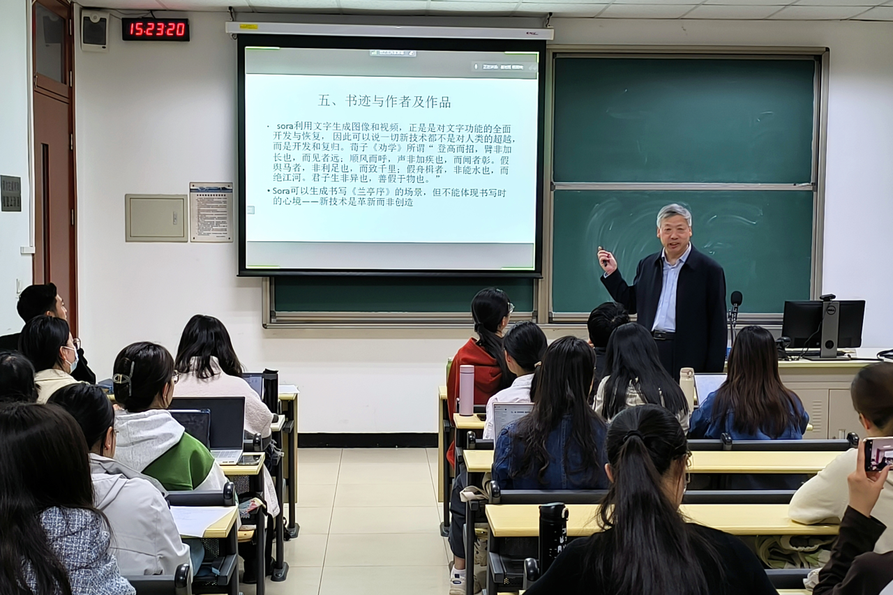接下来,张廷银教授进一步结合古今文献与时事材料,讲解了文字、人与思想之间的关系。张廷银教授认为文字是表达人的思想和精神的工具,“言为心声,书为心画”,在理解文字背后的含义时,也需要关注人的心理和品格,既要“知人论诗”又要“知书论诗”。最后,张廷银教授对基地班的学员们提出期待和展望,希望感兴趣的同学能够从书迹的角度进一步发掘中国文学史,积极参与其中,为中华文学文化的研究传承贡献力量。