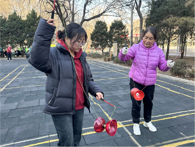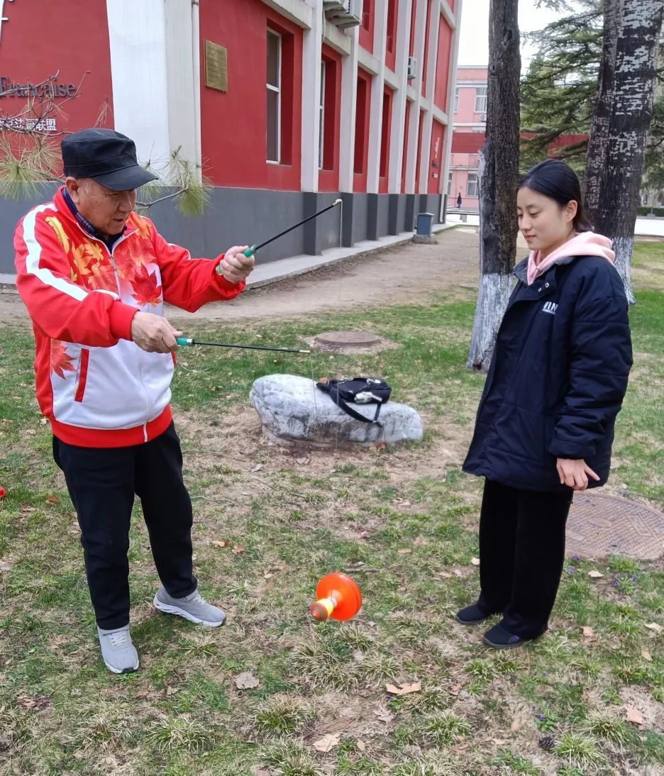 讲授结束后,姜西良老师与张强教授、郁延芝指导员带领前来听讲座的师生前往教二楼下草坪,亲身体验抖空竹,中外学生表现出浓烈兴趣,沙龙在大家飞舞的空竹与欢声笑语中圆满结束。