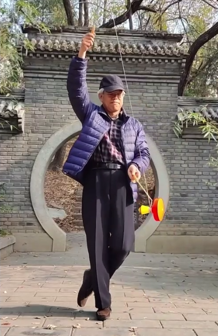 大学教授乐抖空竹