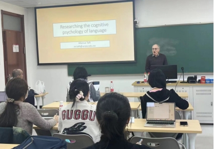 Marcus Taft教授开设了一门研究生国际课程《Experimental Design and Research》。Taft教授精心设计教学内容,课程分三个主题,分别为“Researching the cognitive psychology of language”“A Difference in English Lexical Processing between Native Speakers and Chinese-English Bilinguals”“Phonological involvement when reading silently for meaning”。