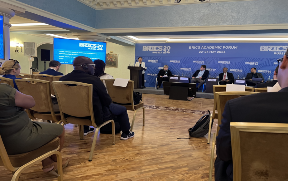 第十六届金砖国家学术论坛2024年5月22-24日在俄罗斯莫斯科举行,本次论坛聚焦金砖扩员后如何更好的发挥金砖合作机制在推动全球治理方面的作用,鼓励新成员国更快融入金砖大家庭。200多位来自金砖国家的专家学者出席论坛,围绕全球治理、国际安全与稳定、经贸合作、粮食与能源安全、科技与创新等话题开展交流对话。中共中央联络部研究室主任、金砖国家智库合作中方理事会秘书长金鑫博士率团与会并发表基调演讲,北京语言大学国际关系学院副院长马方方教授代表北京语言大学国际关系学院应邀参加了本次学术论坛。