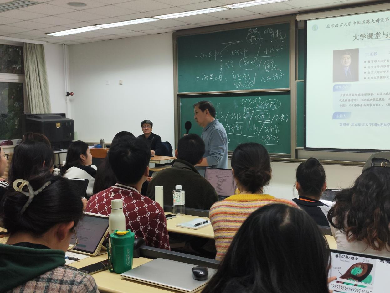 2024年10月24日下午,中国道路大讲堂高端讲座第二十五讲在北京语言大学教三楼300成功举办。此次讲座邀请到了北京大学国际关系学院教授、教育部长江学者特聘教授王正毅老师,他演讲的主题是“大学课堂与知识框架的构建”。本次讲座由北京语言大学国际关系学院、马克思主义学院主办,北京市高教学会国际政治研究分会协办,北京语言大学国际关系学院院长贾烈英出席并主持。