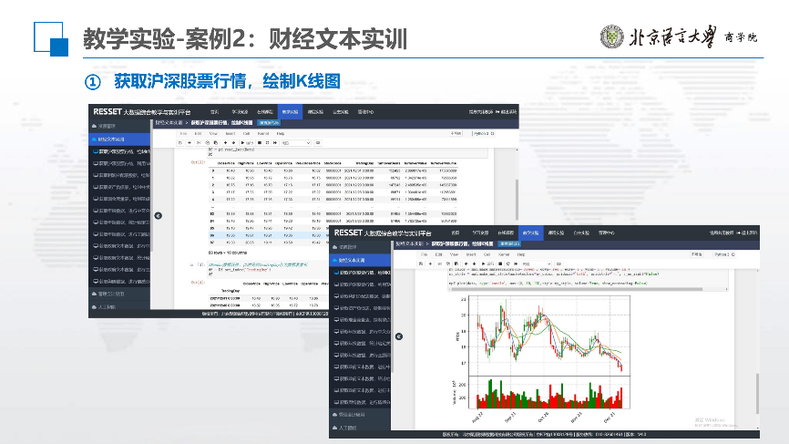 在财经数据分析方面,杨老师演示了锐思数据库的多项实用功能,如利用沪深股票数据绘制K线图,通过财务报表数据生成多样化图表等。同时,杨老师还详细说明了如何利用政府文本数据进行主题凝练与概括,并对舆情信息进行情感分析。