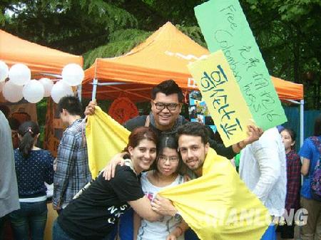 千龙网北京5月11日讯(记者 于振华)今天下午,有着“迷你世博会”之称的北京语言大学第九届世界文化节游园会在北京语言大学拉开帷幕,来自五大洲44个国家和地区的数百名中外学生同台献艺,为中外师生献上了一场文化盛宴。各参展国使馆官员也应邀出席了游园会,游览了五大洲展区。