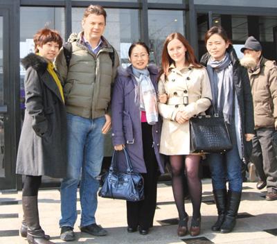 图为乔杰(左二)终于面对面地见到了网上中文老师