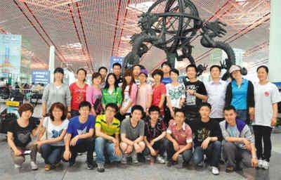 年轻的汉语教师志愿者们在北京首都国际机场整装待发