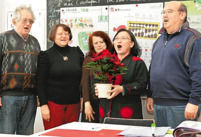 德国莱比锡孔子学院学员正在为老师(右二)过生日