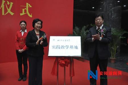 张广智发表致辞,他说,安阳和北京语言大学在文化研究教育交流方面有着广阔的空间。这次北京语言大学与中国文字博物馆合作建立实践教学基地,将有利于充分发挥各自的优势,加强学术研究交流,深入开展人才培养,实现资源共享互补;有利于在北京语言大学和安阳之间架起一座友谊桥梁,进一步密切双方合作;有助于培养具有深厚文化底蕴和对华友好的中外文化交流使者,传承弘扬中华文字语言,提升中华文化影响力。