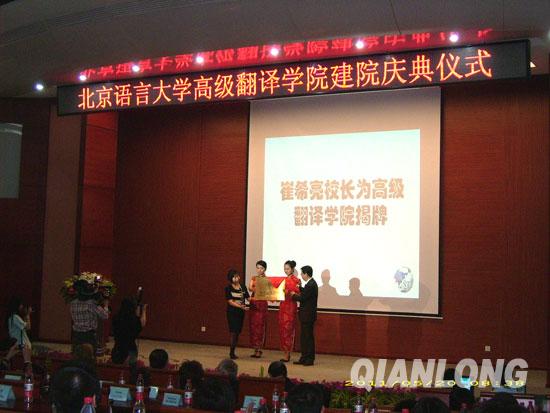 新华网北京5月20日电(李江涛、蔡啸天)北京语言大学高级翻译学院20日成立,这是全国首个同时面向国内外招收本科生及硕士生,以及全国唯一一个招收翻译专业本科(法语方向)高起点学生的翻译学院。全国首个跨语种翻译专业也设在该院。