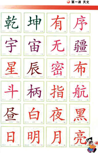 生活在美国加州的6岁男孩刘亮亮就是巧用音韵学习汉语的受益者。通过诵读《中华字经》,他在4个月内就学会了4000多个汉字,单字识字量达90%以上,这样的识字量即使和国内同龄孩子相比也很惊人。通过《中华字经》的学习,亮亮的综合学习能力也得到了同步提高,能看懂的中文书越来越多。