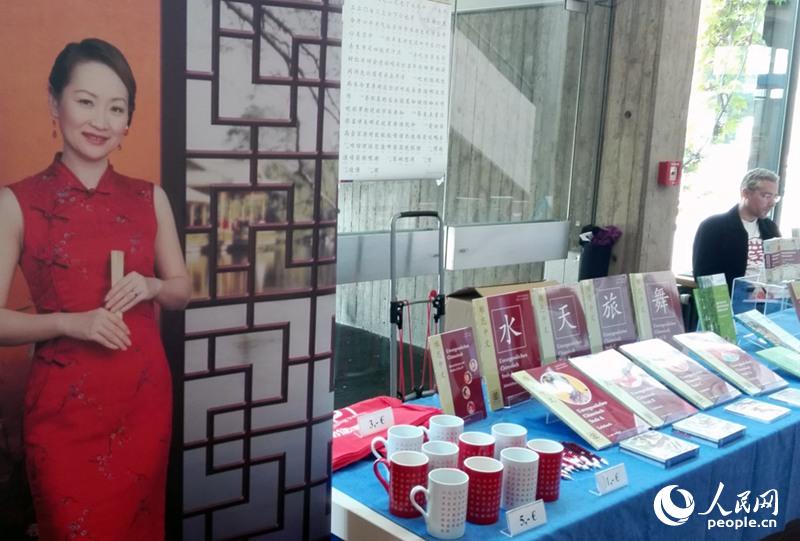 汉语教学研讨会场外的汉语资料展卖。人民网记者管克江摄
